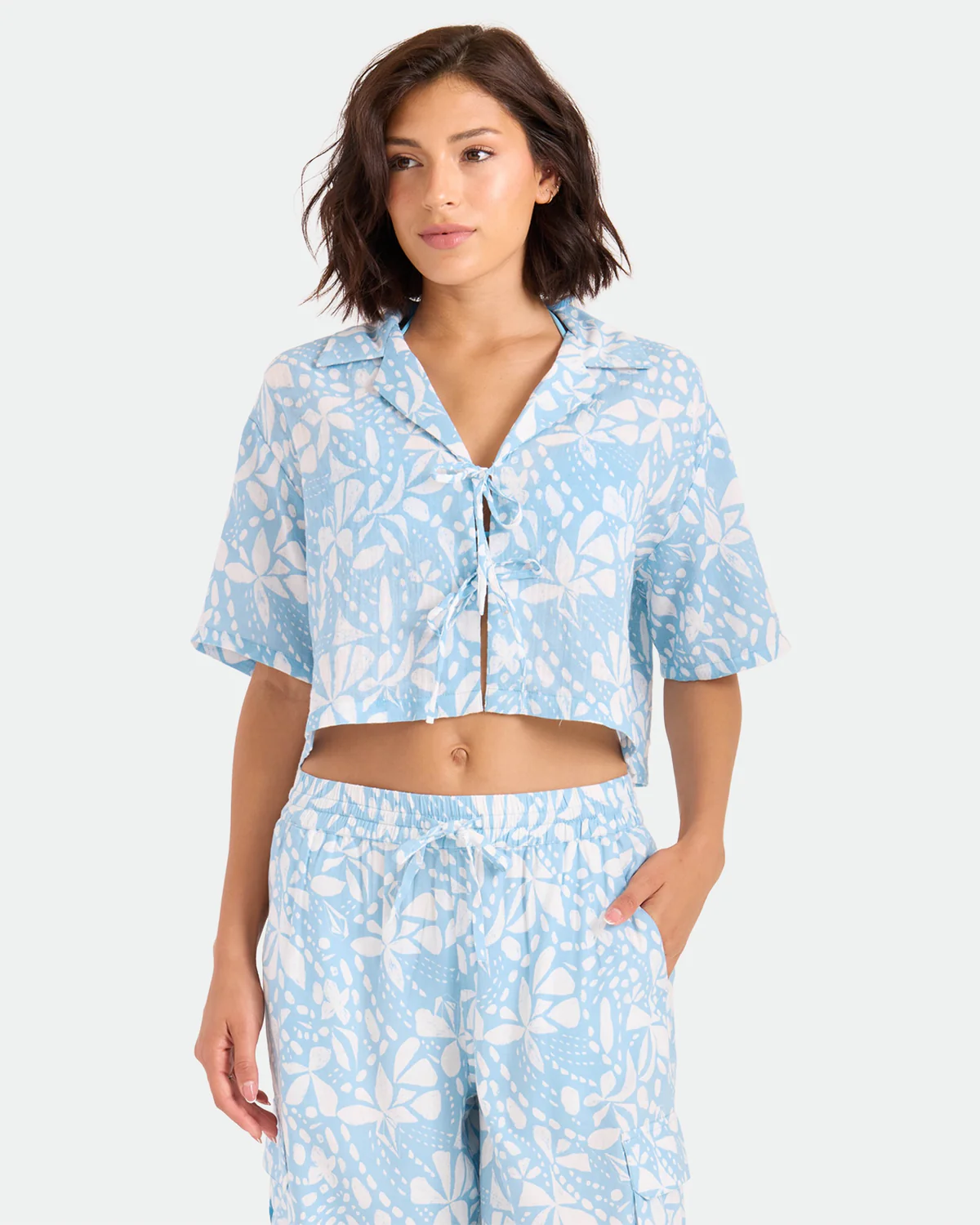 • Made from soft 100% cotton, it's breezy over swim or bold with high-rise denim. Summer Song color, cropped cut, zero effort, maximum attitude.